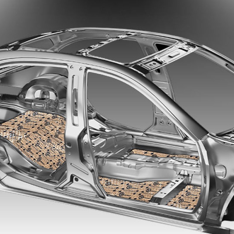 Velmi flexibilní vícevrstvý tlumící materiál, který pevně přilne k nerovnému povrchu a poskytuje vynikající výsledky tlumení vibrací, vysoce kvalitní polymer na bázi butylkaučuku - nanesený na hliníkovou fólii, doplněný antikorozními přísadami, které zajišťují, že ošetřený povrch nerezaví, extrémně přilnavý.