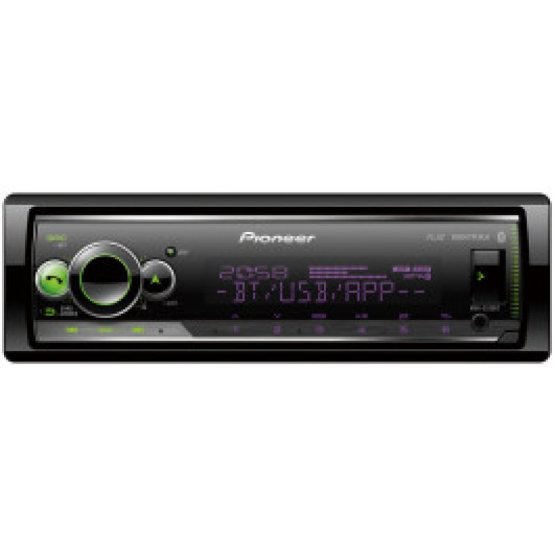 4*50W MOSFET, Bluetooth, prosv. čel. vst. USB, AUX, WMA/MP3/WAV/AAC/FLAC, 3x RCA, rozpozn. hl. (Siri Eyes Free / Asistent Google), Aplikace Pioneer Smart Sync - (iOS/Android = USB/BT), prac. s iPhone a kompa.í s Android / AOA 2.0, Spotify - (iOS = USB/BT. Android = BT), KARAOKE, RGB prosv.,13-ti pásm. ekv., LPF/HPF, 3-pás.výh., možnost připojení 2 telefonů (spárovat až 5 tel.), záloh. paměti po odpojení od aku., hodiny